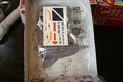 | 一体成形でシンプルな構造だ。本体の上下をセメダインでくっつけてゼンマイボックスをポンっとつければ、はいできあがり! | こちらもシンプルな内容だ。Easy to assemble! |