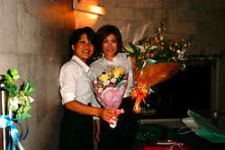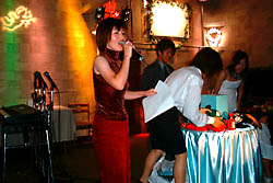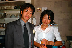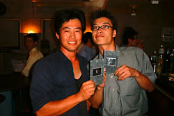 なべと渡久地さん。渡久地さんは、なべがジャーナルやってたころお世話になった。私も紅茶を何度かいただいた。 大役をこなしたぱら。終ったあと泣き崩れておった。おつかれでした。 右はスペシャルゲストのがく。加藤の作った照明のプレートを持っている。まるで、がくが作ったみたいに見えるぞ。 渡久地さんとなおちゃん。なおちゃんは会場デザインを担当。なかなかセンスよくまとまっていた。