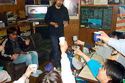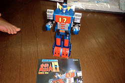 | 渡久地さんのワインで乾杯。おや?ふたりとも酒飲めないんじゃなかったっけ? | これはなんだ?わかる人はかなりのマニア。「大鉄人17」というロボットらしい。なんと完全(?)変形する。ところがこのあと「とんでもない事態は発生した!その事態とは!!」(ガチンコ風) |