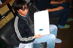 | さて、いでやんはUSB対応のMOをいただいた。データ受け渡しにはやっぱMOがお手軽だ。三輪君はpainterっていうお絵描きソフト。お高いデス。 | MOと来たらスキャナーってか。う〜ん、すごい。あとはプリンターかな。でもfujituのスキャナーってあるんだな。 |