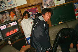 松原さん、金指、南川BD(12月8日) 今日はオーバーでも最も古参でFukujusoのドラマー松原さん、ソフト選手でありながら現場スタッフもこなす金指(毎年言ってるけど、「かなざし」とお読みっ)、そしてアカデミー出身の秀才、南川の誕生会でした。実は1次会として健康ランドで忘年会をやったあとで、その模様は次回特集いたしましょう。
