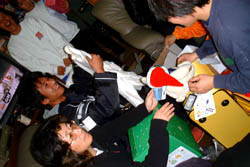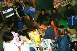 | まったぁ〜よくわかんない写真だな、赤い三角形が見えますか?それ、実はスヌーピーの人形の帽子なのです。音に反応してダンスするやつで、めっちゃかわいかったでー。(なぜか大阪弁) | キャラクターつながりでこっちは・・・ユーミン!?「はーるよ〜ぉー」あれれ?違うようですな。よく見ると「ムーミン」がかつらをかぶっているようです。それで「ユーミン」?? |