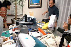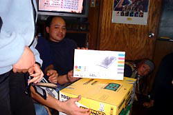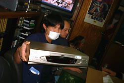 | 徳ちゃんはビデオ。えっ?ビデオ本職なのに持ってない?彼のビデオはぜーんぶ業務用のばかりだから。風邪デス。 | さて、appleの事務所・・・じゃなくってオーバーの事務所はあいまっく、あいぶっくの嵐じゃ。なんとかしてくれ。「窓」はどこだー! |