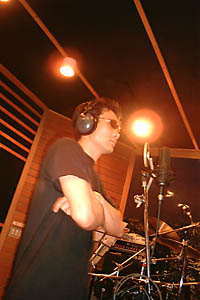 レコーディング中なぜかず〜っとドラムのスティックを片方持って、時々肩とかひざとかたたいてやっていた。手持ち無沙汰なのか。見ていて不思議だったなー。