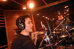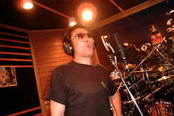 来る途中、車の中でマネージャーの隆司と猛特訓をしてきたという。最初の頃はどうもラップが一本調子から抜けきらなかったfが、次第にコツをつかんできたのか、NGが少なくなっていった。「ガチンコのイメージで通したい」、というディレクターのgokiさんの指導のもと、たけちゃんはだんだん迫力を増していき、最後には、ほぼ狙いどおりのラップがとれた。どんな曲かはまだちょっと企業秘密だけど。