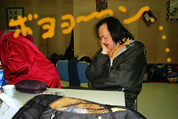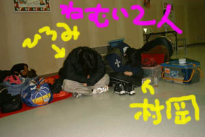 村「ねえぇ〜ひろみせんぱーい、まだ始まらないんですかぁ〜?」 ヒ「え〜?あ、ア・・・ワタシに聞かれてもわ、わかんなーい・・・」 村「そ、・・・そうデスね。ハハ、じゃーもう寝ましょうか」 ヒ「グー・・・」 村「あ、もう寝てますね、あ、失礼いたしました。」 |