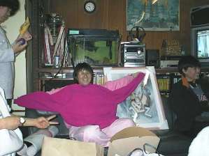 | きょうは松原さんと金指のBDPartyだった。ピンクに染まるまっつぁんの図。kenさんからはEPSONのプリンターをもらって大満悦! |