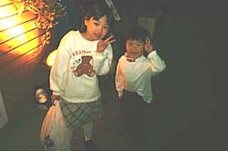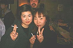 久々の登場、岡垣。がんばってるか? タバコのにあう美女ふたり?なーんだ、伊藤&「日比さんです」だ。あれ?うしろに背後霊が!助けてくれー!おーいおい、福ちゃんだってば。でもこわ〜い。 ばいばーい・・・あれっ? このふたりどっかで見たような・・・
