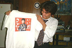 本日の作品。Tシャツにプリントされているのは、子供を抱いた飯田君です。ハズカシそうでした。