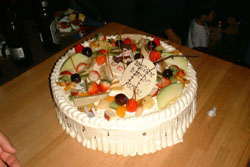 大きなケーキだ。Kenさんの形をしたチョコレートでできた人形(あーん?)がのっていて、なかなか精巧な作りをしていた。 |