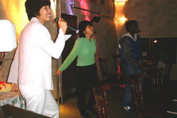 お客さんが来る前にまずはリハーサル。全員でChild of the sunを歌うことになっているので、振りを練習しているところ。 |