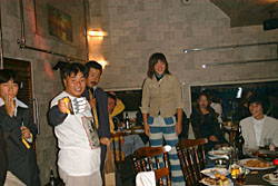 プレゼントコーナー。しかし私は外でフォークソング&ワインバーをやっていて、殆ど見れなかったのだ・・・ ソフトのしばちゃんからはガラス製の温度計(?)。よくわからなかった。 |