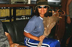 瀬戸、Isoの選んだ帽子と誰かからのサングラスをして、栗を持つ。みょーな組み合わせになってしまった。私がスタイリストしました。