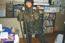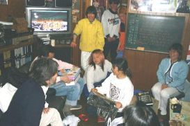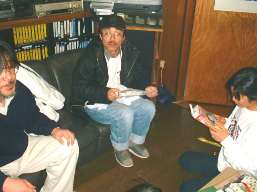 | こらこら、トーマス、なにやってるんだ。 | なんと隆司がトーマスを特訓していたのだーっ。「いやー金子さん、おもしろいッスよ、これ。」・・・あれ? |