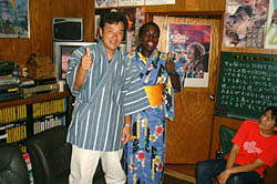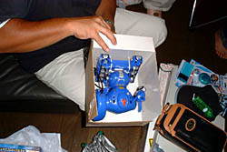 | これはお江戸のイタさんとヨメの図ではありませぬ。着物のようなものをもらった隆司と、ゆかたをもらったIsoとのツーショットだ。Isoは、暑そうだった。 | 私からのプレゼントは「ロスト・イン・スペース」の「フレンディ」のオモチャ。リモコンで動く。 |