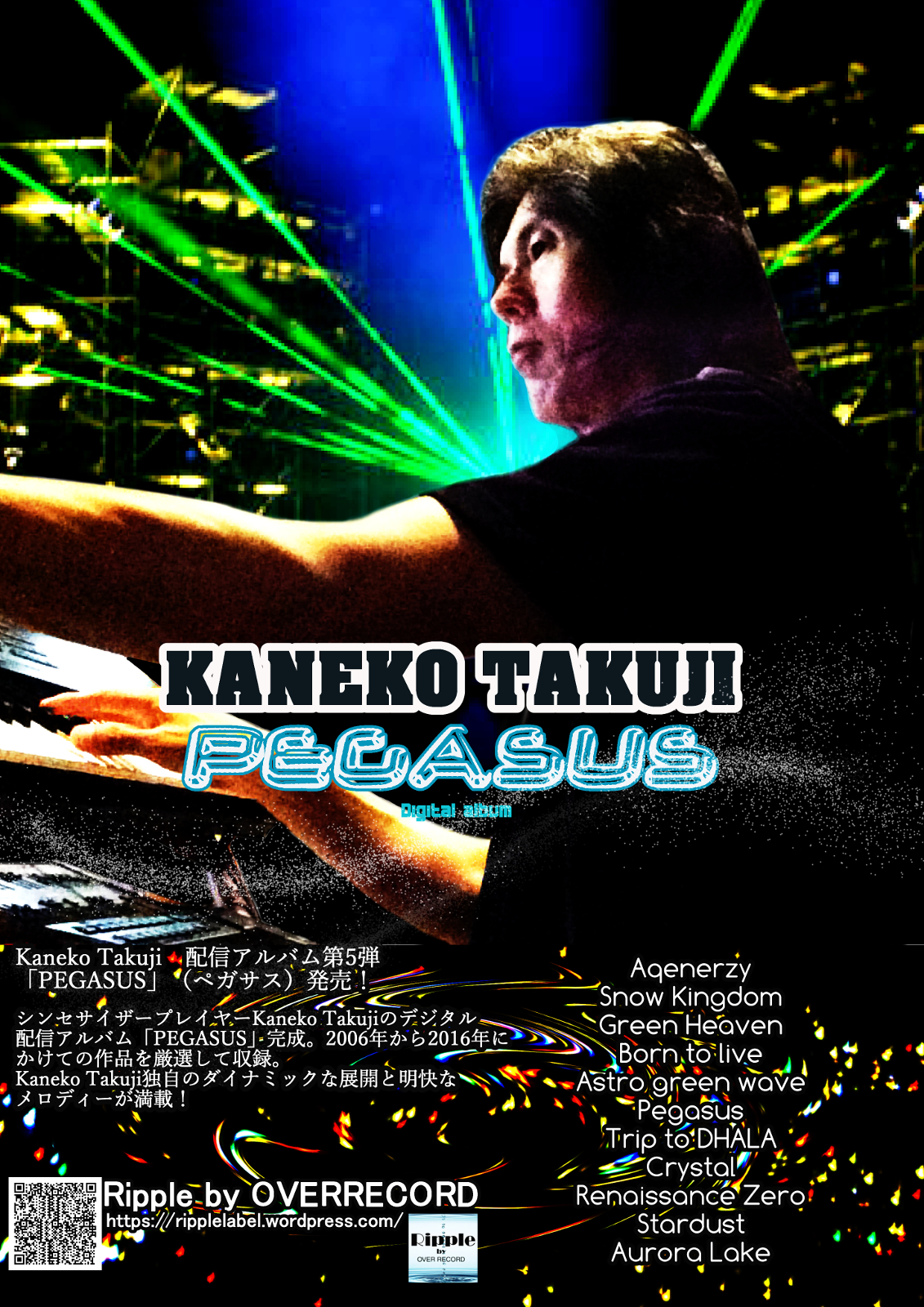 この配信アルバムは、星座、あるいは星、といった宇宙空間をイメージして作った曲を中心に構成されています。 タイトル曲の「Pegasus」はその名の通り、ペガサスが疾走するイメージの明るい曲、「Aqenerzy」は、水の惑星「地球」をイメージした曲。 また、この作品は、「メロディーをいかにシンプルにするか」に拘って作られています。元々僕の作品の殆どがそうですが、特に拘りました。 覚えやすいということは大事ですからね! それでは、僕の自信作「Pegasus」お楽しみください!