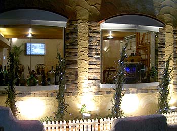 | 木々にも雪のような電飾です。まるでヨーロッパの名所にあるレストランのようなたたずまいですよね! | おなじみのプラズマテレビでは環境映像がずっと見れます。落ち着いた雰囲気です。 |
