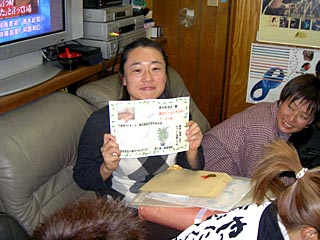 | 清水(たく)はフォーマルな靴とコンパクトフラッシュのプレゼント。彼はうちの(オーバーの)webデザイナーです。フラッシュはおまかせ! | 東京からお越しの清水(和)はお部屋のリフォームがプレゼントです。詳しくはお次のページへ。 |