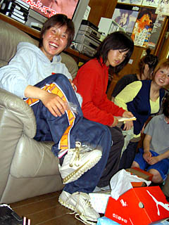 | いもさんへのプレゼント、まずはナイキのシューズです。金子娘も欲しそうにしています。ところで名前のお話の続きですが妹と書いてなぜ「まい」と呼べるのかわかりますか? | こちらもシューズですが、今度はPumaです。昔は「ピューマ」と呼んでましたがみんなの発音を聞いていると「プーマ」と言っています。BMWをベーエムベーと呼ぶようなものか。 |