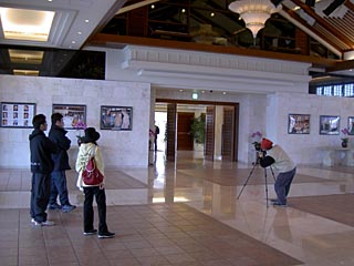 | Kは安田家と合流です。まずはおなじみのサミット会場。お父さんすでに写真撮りまくりです。みんな撮り終わるのを待っています。 | さっそくお父さんにつかまった南川。何やら説教されていますが、この日、見ず知らずの人に延々と説教をしたのにはさすがに「ビックリしたー!」です。 |