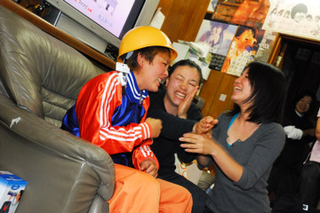 | だからと言って、「ゴリ」とか「ジーパン」もいるわけではないですよ。あ、・・・わかんないか?こりゃ失礼。 | メジャーで変顔、どないすんねん!山さんは何をもらっても一応ネタをやります。やらないと気がすまない、と言うべきか。 |