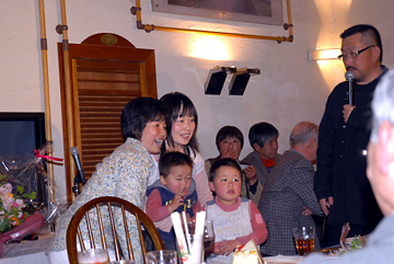 | FACEはいつものプレゼント当てゲームのあと、替え歌も披露してくれました。「ごめんね〜!」で盛り上がりました。 | 青山一家です。小さかったふたりの子どももこんなに大きくなりました。 |