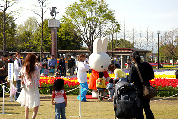 | タワー下付近にこんな花壇もありました。そこらじゅう花だらけ!春!! | おなじみミッフィーと写真が撮れるコーナー。親子連れでにぎわっていました。 |