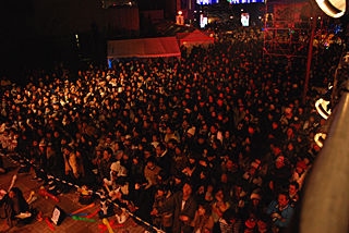 | こちらはベテラン、KOJI-HAJIです。70〜80年代の音楽を彷彿とさせるサウンド。 | さて、ご覧ください!このお客さんの数。どこまで続いているのか分からないほどです。 |