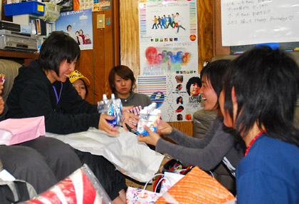 | リュックをいただき、さっそくそこにバットを収めるプー。「小学生?」というツッコミあり。 | 耀士君登場。「おねえさま、おたんじょうび、おめでとうございます!」とは言わなかった。 |