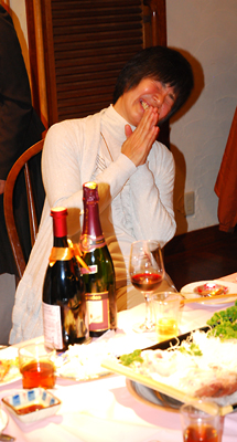 | そして、シャンパンとワインもいただきました。とってもうれしそうですね。 |