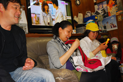 | 田中といえばスマイル。そして「黄色」。黄色は金運がよくなるらしいよ。 | くまは何もらったの?不思議なベルトのような長いものを巻いて巻いてゆくと・・・ |