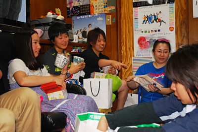 | 辻浦さんのプレゼントはカーナビです。「息子に取られそう」だそうです。 | 隆司は、なんと、タイヤ。タイヤが出たのは初めてです。隆司は走る距離がすごいからねー。 |