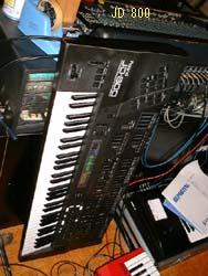 ←これがRoland JD-800です1.特徴 PCM素材を採用しながら、操作系はアナログ感覚で行える点。音のヌケはまあまあよく、エフェクターもディストーションなどを備え、強力なEQとあいまって個性的な音が作れます。 2.弱点 PCM素材のみを音源とするためか音がペラペラで薄く、芯がありません。従って幾分存在感に欠けます。広がり系にはもってこい、でもソロには向いていないという感じです。金属系も得意ですが、いかんせんどのPCM素材も似たり寄ったりで、バリエーションは期待できません。原因は、素材自体が洗練されすぎているためではないでしょうか?もっと荒削りな個性的な音が欲しかった。かつての名機D-50のような。 操作系の弱点であるスライダーは、すぐにホコリがはいってガリガリこすってしまいます。メンテナンスで掃除してもらえますが、ひどい物は交換しないと、演奏中に勝手に数値が変わったりするので直しましょう。私はもう10箇所くらい換えました。 そして・・・こいつ、かなりヘヴィ。です。 3.用途 ローランド特有の甘い音。包みこむような3次元空間の演出。回り系。飛び系など。時に主役を張る、でも一瞬です。ただ、キラキラ系はよーくヌケますので、脇役でも目立ちます。「アナログ的」ですが「アナログ音源」ではないところに注意してください。アナログのサンプリング波形は入っていますが、パルスワイズなどはいじれません。(一から作る事は出来ません) |